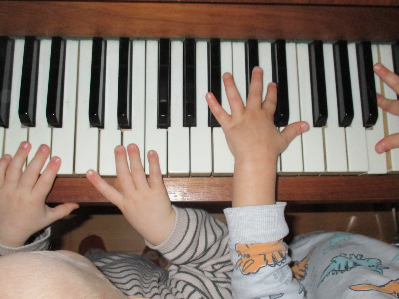 Kinder lieben Musik! Da trifft es sich gut, dass mein Mann Roland Musiker ist und wir das ganze Haus voller Instrumente haben, an denen sich die Kinder gerne ausprobieren dürfen. Außerdem gibt es jeden Vormittag eine Musikeinheit: Ich singe Lieder und spiele Gitarre, die Kinder begleiten mich mit diversen Rhythmusinstrumenten (Trommel, Triangel, Schellen, selbstgebastelte Rasseln, ...) und tanzen dazu, jede(r) so wie sie/er mag. Und danach machen wir alle zusammen Krach auf dem Klavier :-)